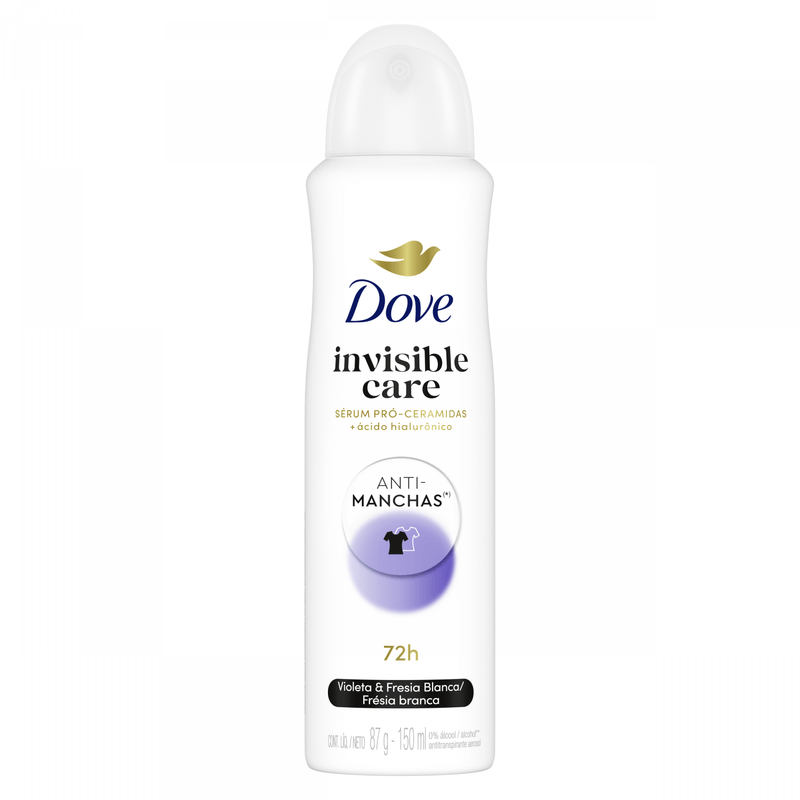 Sentite libre de hacer lo que más te gusta sin preocuparte, usando el Antitranspirante Dove Invisible Care. Su nueva tecnología Serum Pro-Ceramidas con ácido hialurónico cuida tu piel mientras te protege.Este desodorante fue desarrollado para evitar las manchas blancas. Probado en 100 colores.
