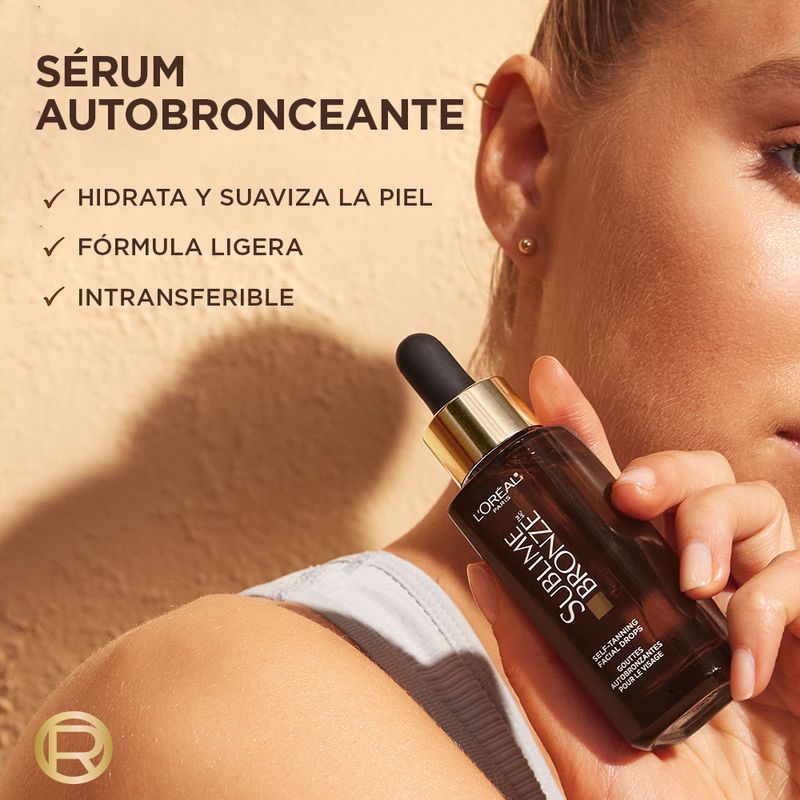 El Sérum Facial Autobronceante Sublime Bronze es el complemento perfecto para cualquier rutina de cuidado de la piel. Permite construir gradualmente tu bronceado facial ideal, funciona con tu crema hidratante favorita, transformándola en un autobronceador a medida. Su fórmula cuenta con Ácido Hialurónico, una potente molécula con efecto hidratante, para una sensación de humectación adicional.