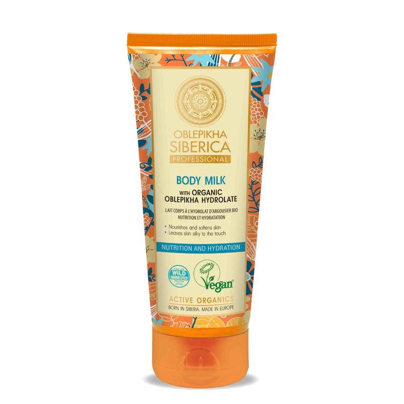 Nuestro leche corporal basada en hidrolato orgánico de oblepikha es absorbida fácilmente dejando la piel suave y elástica.